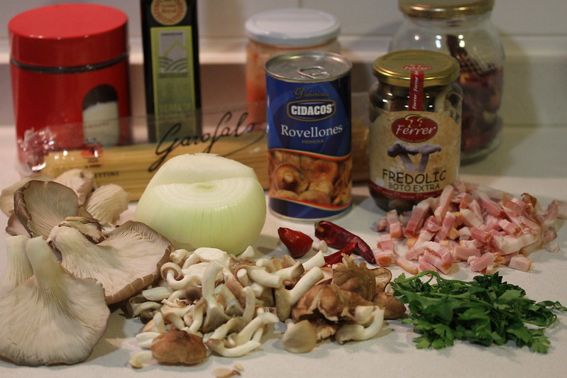 - 250 g. de setas de cultivo: Buna-shimeji blanco (Hypsizygus marmoreus), Shitake (Lentinula edones) y seta ostra (pleuratus ostreatus)